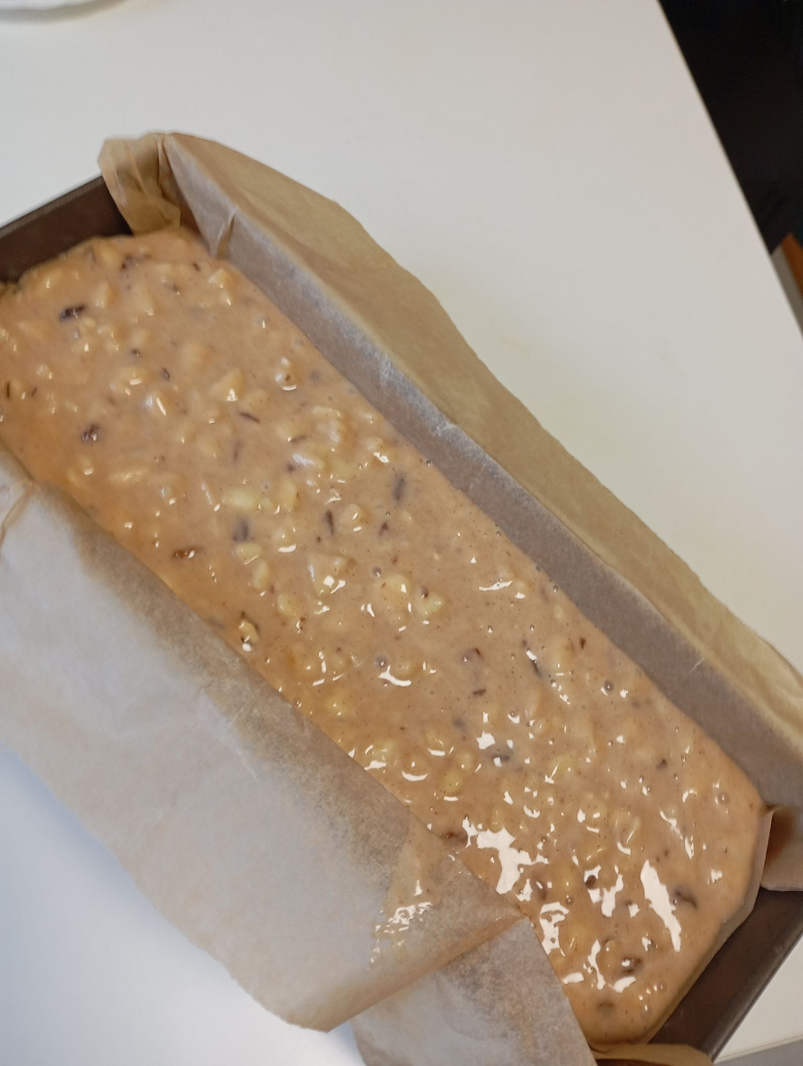 W poniedziałkowy przedświąteczny czas, tuż przed Wigilią naszą bibliotekę odwiedzili chłopcy, którzy korzystając z przerwy w nauce, nie chcieli siedzieć w domu przed komputerem. Ciesząc się bardzo na te odwiedziny dostarczyliśmy im rozrywki w postaci wspólnego pieczenia świątwcznego keksu, co okazało się strzałem w dziesiątkę. Szybko zorganizowliśmy potrzebne składniki kupując je w pobliskim sklepie. Chłopcy z zaangażowaniem odmierzali odpowiednie ich porcje, mieszali ciasto i dzielili się sprawdzonymi domowymi przepisami. Aromat cynamonu, jabłek i bakalii unoszący się w bibliotece sprawił, że miejsce to na chwilę zamieniło się w prawdziwą świąteczną kuchnię. Wszystko odbywało się pod czujnym okiem doświadczonej seniorki Pani Natalii.