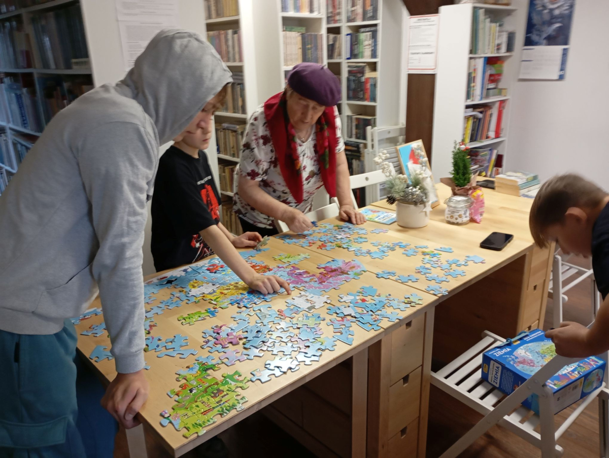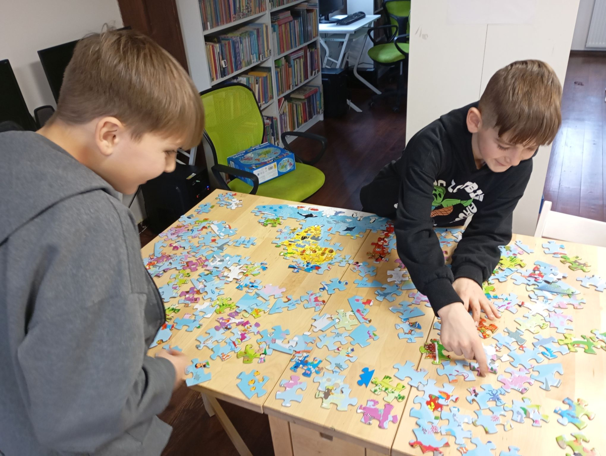 W czasie, gdy keks piekł się w piekarniku, nie zabrakło rozmów i wspomnień. Wspólnie rozmawialiśmy o tradycjach świątecznych w swoich domach, przygotowaniach do Wigilii, ulubionych potrawach oraz rodzinnych zwyczajach przekazywanych z pokolenia na pokolenie. Oczekiwanie urozmaiciliśmy sobie układaniem puzzli i grą w planszówki, które dostarczyły wielu emocji, śmiechu i sprzyjały integracji.