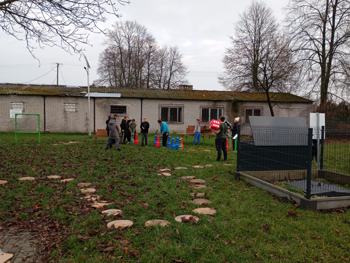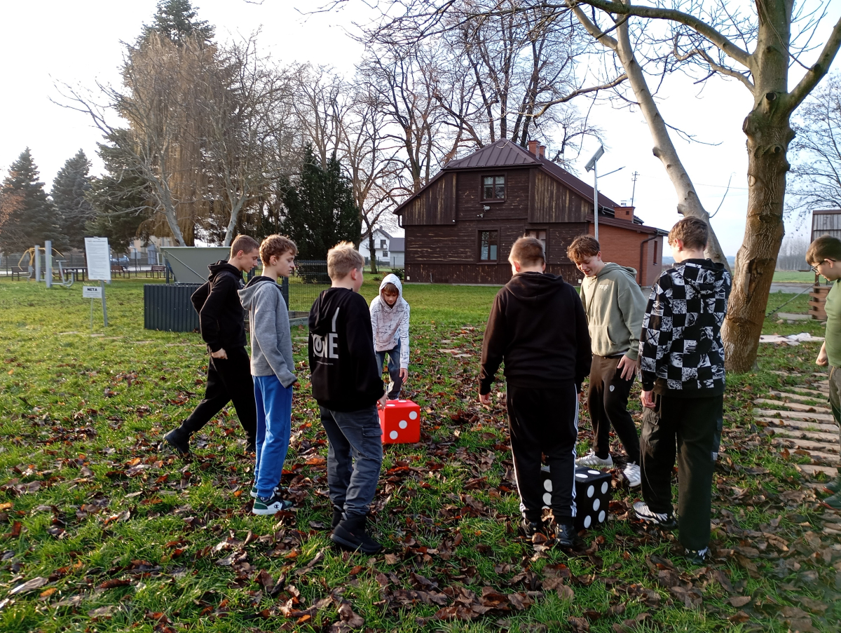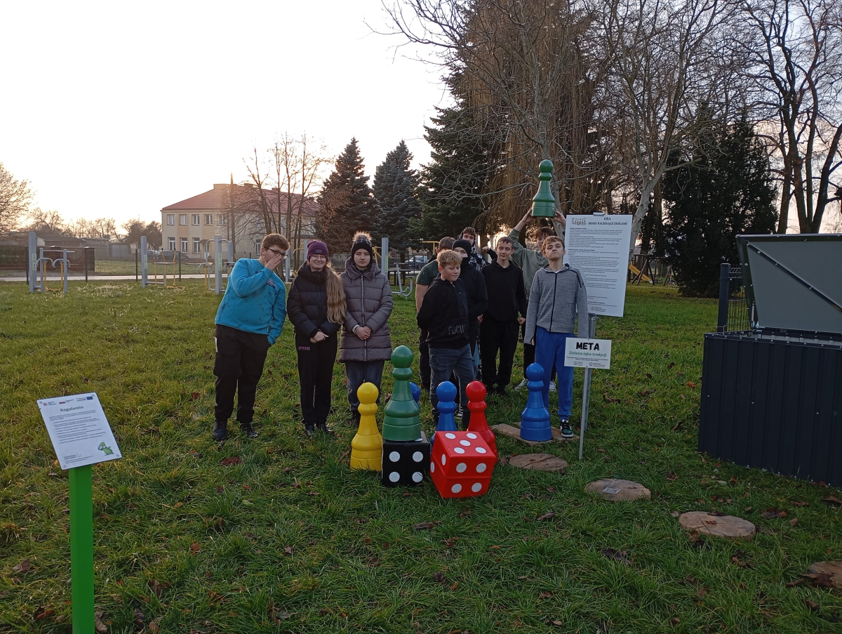 Dziś młodzież z PSP w Grabowie nad Wisłą po raz pierwszy miała okazję zagrać w wielkoformatową grę planszową, ktora postała na placu przy naszej bibliotece. Byli oni nie tylko ciekawymi gośćmi – ale przede wszystkim jej współtwórcami. To wyjątkowy moment, kiedy pomysły, które jeszcze niedawno istniały jedynie na kartkach notesu, w szkicach i burzach mózgów, zamieniły się w prawdziwą, angażującą rozgrywkę.