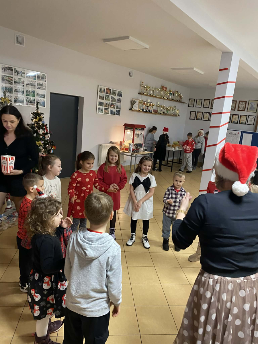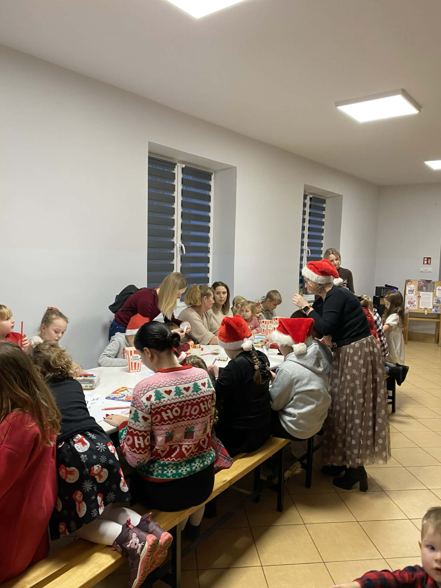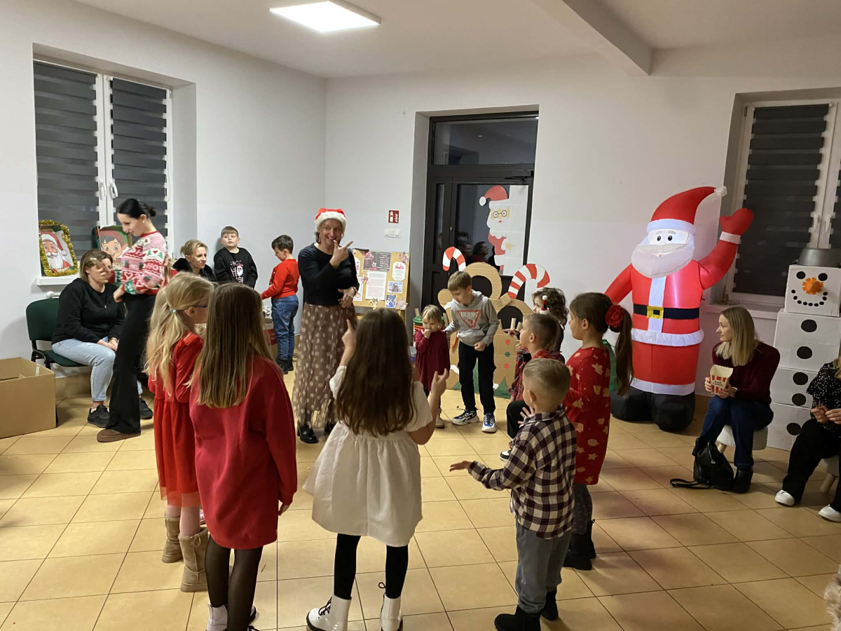 Wydarzenie rozpoczęło się rodzinnymi warsztatami tworzenia ozdób choinkowych. Małe rączki i duże serca pracowały pełną parą – powstawały kolorowe i niepowtarzalne dekoracje, które zawisły na naszych świątecznych drzewkach. Przy pięknie udekorowanych choinkach dzieci i dorośli zasłuchali się w nastrojowych, świątecznych opowiadaniach, które wprowadziły wszystkich w magiczny klimat zbliżających się Świąt Bożego Narodzenia. Czas oczekiwania na wizytę św. Mikołaja urozmaicony był radosnymi tańcami, zabawami i konkursami dla dzieci i ich rodziców, m.in. sprytna czapka Mikołaja, turlanie mikołaja i lepienie bałwanków. Atmosfera była pełna śmiechu, radości i rodzinnej bliskości. Gdy wreszcie pojawił się długo wyczekiwany Mikołaj, na twarzach dzieci zagościł prawdziwy zachwyt – były prezenty, pamiątkowe zdjęcia i mnóstwo uścisków. Wspólne spotkanie stało się pięknym dowodem na to, że świąteczne cuda rodzą się tam, gdzie ludzie są razem.