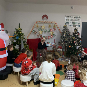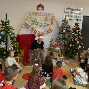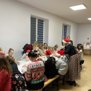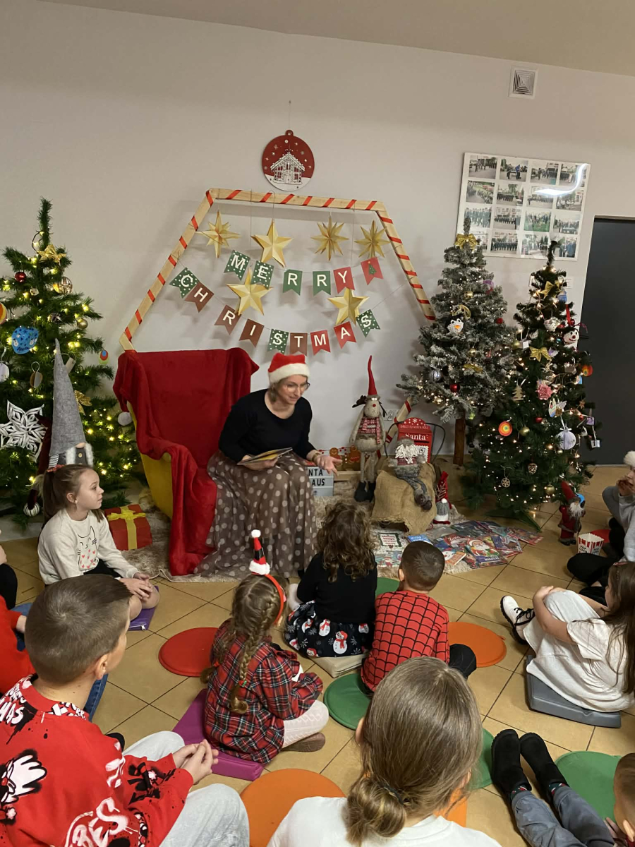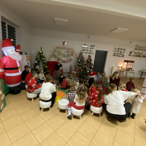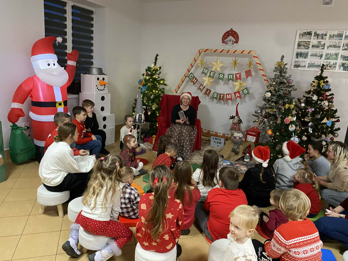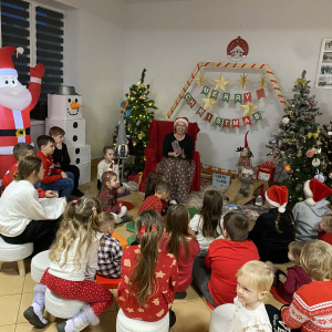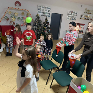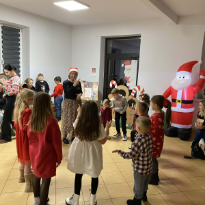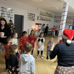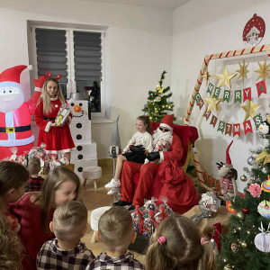 Wydarzenie rozpoczęło się rodzinnymi warsztatami tworzenia ozdób choinkowych. Małe rączki i duże serca pracowały pełną parą – powstawały kolorowe i niepowtarzalne dekoracje, które zawisły na naszych świątecznych drzewkach. Przy pięknie udekorowanych choinkach dzieci i dorośli zasłuchali się w nastrojowych, świątecznych opowiadaniach, które wprowadziły wszystkich w magiczny klimat zbliżających się Świąt Bożego Narodzenia. Czas oczekiwania na wizytę św. Mikołaja urozmaicony był radosnymi tańcami, zabawami i konkursami dla dzieci i ich rodziców, m.in. sprytna czapka Mikołaja, turlanie mikołaja i lepienie bałwanków. Atmosfera była pełna śmiechu, radości i rodzinnej bliskości. Gdy wreszcie pojawił się długo wyczekiwany Mikołaj, na twarzach dzieci zagościł prawdziwy zachwyt – były prezenty, pamiątkowe zdjęcia i mnóstwo uścisków. Wspólne spotkanie stało się pięknym dowodem na to, że świąteczne cuda rodzą się tam, gdzie ludzie są razem.