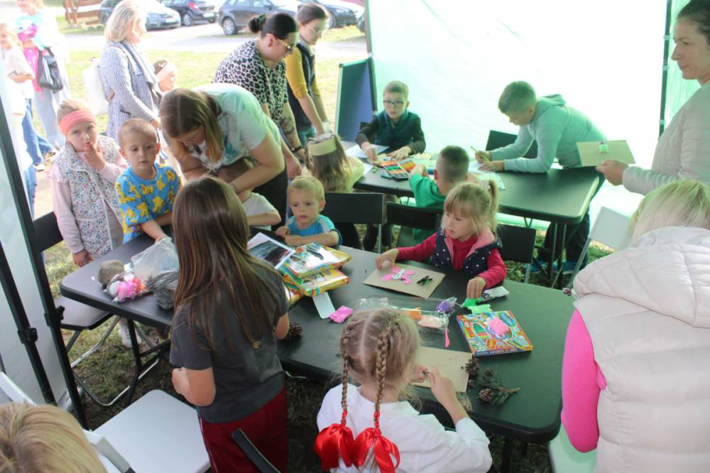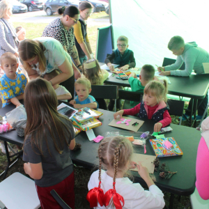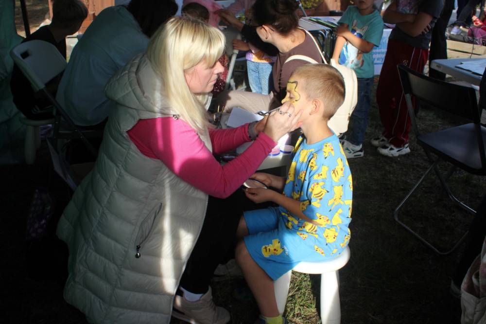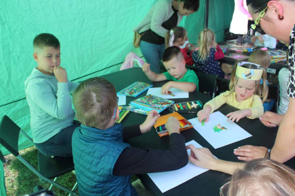 Na uczestników festynu czekały także inne atrakcje. Przy stoisku biblioteki można było sprawdzić swoją wiedzę w quizie literackim oraz skorzystać z uwielbianego przez najmłodszych malowania twarzy. W trakcie wydarzenia Koła Gospodyń Wiejskich z naszej gminy przygotowały pyszny poczęstunek, który umilał czas wspólnej zabawy. Na scenie natomiast zaprezentowały się dzieci z lokalnych przedszkoli i szkół oraz Koła Gospodyń Wiejskich przedstawiając barwne występy artystyczne w formie piosenek i tańców, które spotkały się z gorącym aplauzem publiczności.