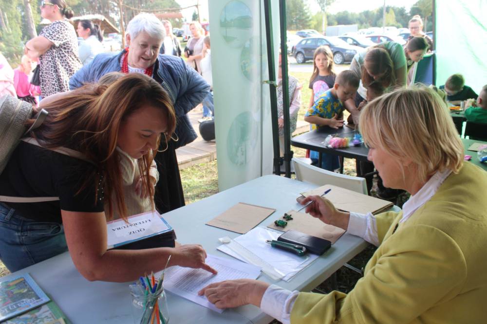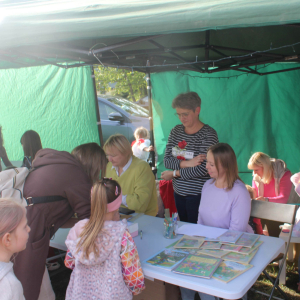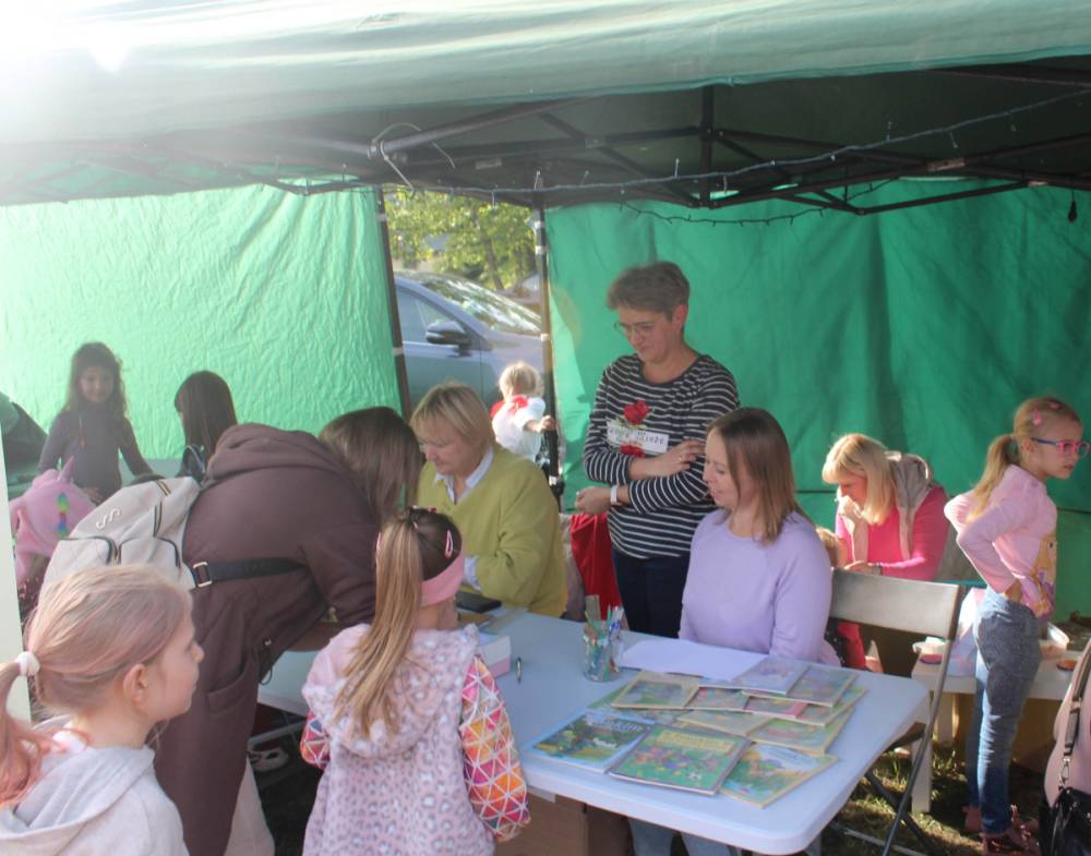 Podczas festynu nie zabrakło atrakcji przygotowanych przez naszą bibliotekę. Przy stoisku bibliotecznym odbyły się dwa konkursy artystyczne: konkurs na figurkę żółwia promującą święto,skierowany do najmłodszych uczestników, którzy swoje prace wykonywali z plasteliny i modeliny oraz konkurs na logo przypinki,otwarty zarówno dla dzieci, jak i dorosłych, do dyspozycji uczestników były kredki, flamastry i papier.