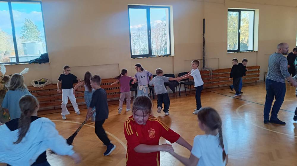 Podczas warsztatów dzieci poznały szereg tradycyjnych zabaw ludowych, które od pokoleń integrowały mieszkańców wsi i towarzyszyły codziennym spotkaniom, świętom i obrzędom. Każda z nich łączyła element ruchu, rytmu i współpracy, ucząc przy tym refleksu, spostrzegawczości i umiejętności działania w grupie.