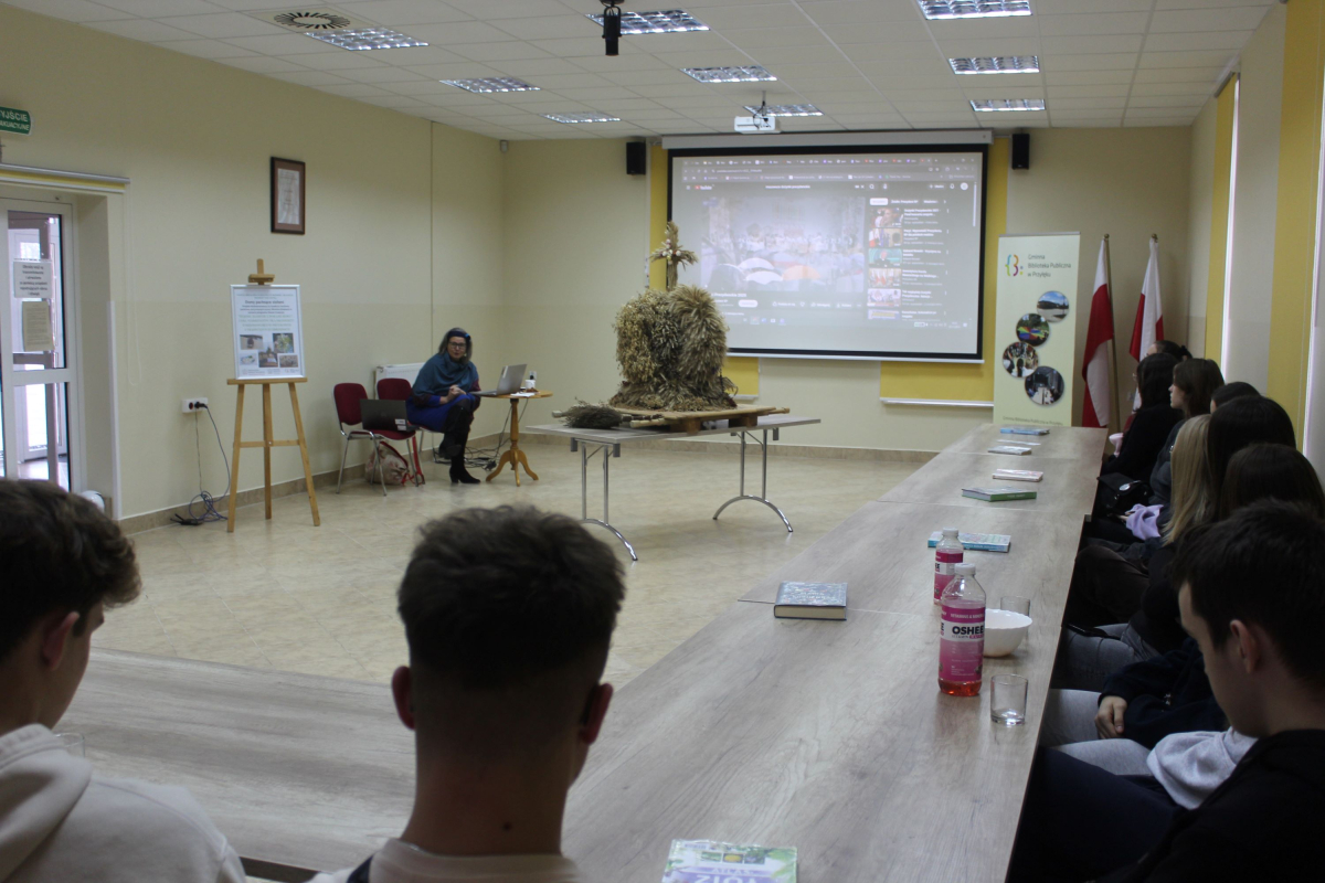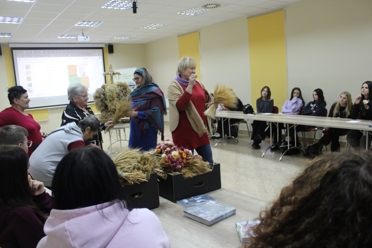 Podczas spotkania młodzież poznała historię dożynek w Polsce, a także związane z nimi dawne obrzędy i zwyczaje, od wieków stanowiące ważną część życia społeczności wiejskich. Uczniowie dowiedzieli się, jak wyglądało święto plonów dawniej, jakie miało znaczenie symboliczne oraz jak zmieniało się na przestrzeni lat.