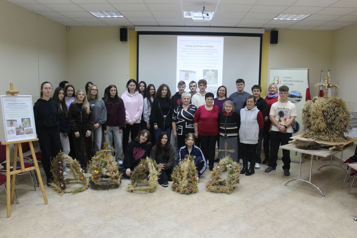 W bibliotece dla uczniów III klasy Liceum Ogólnokształcącego im. Jana Kochanowskiego w Zwoleniu odbyły się niezwykle inspirujące warsztaty poświęcone polskim tradycjom dożynkowym. Zajęcia poprowadziła Justyna Pargieła – zielarka, fitoterapeutka, edukatorka i ziołoznawczyni, która od lat popularyzuje wiedzę o ziołach oraz kulturze ludowej.