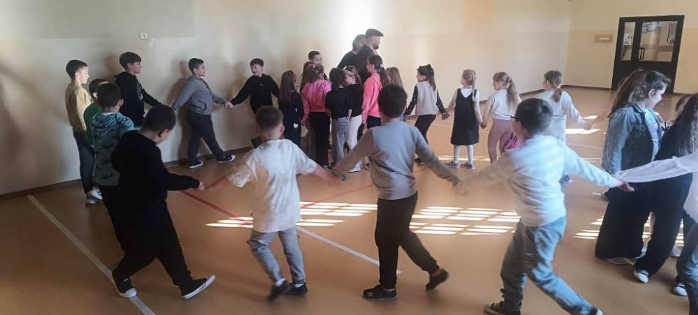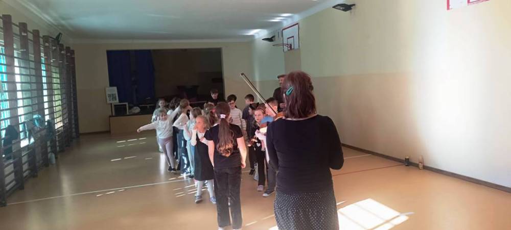 Z tej zabawy dzieci płynnie przeszły do „Gąsienicy”, która zwijała się i rozwijała, tak aby nikt nie zgubił kolejnego „segmentu” – ręki kolegi.