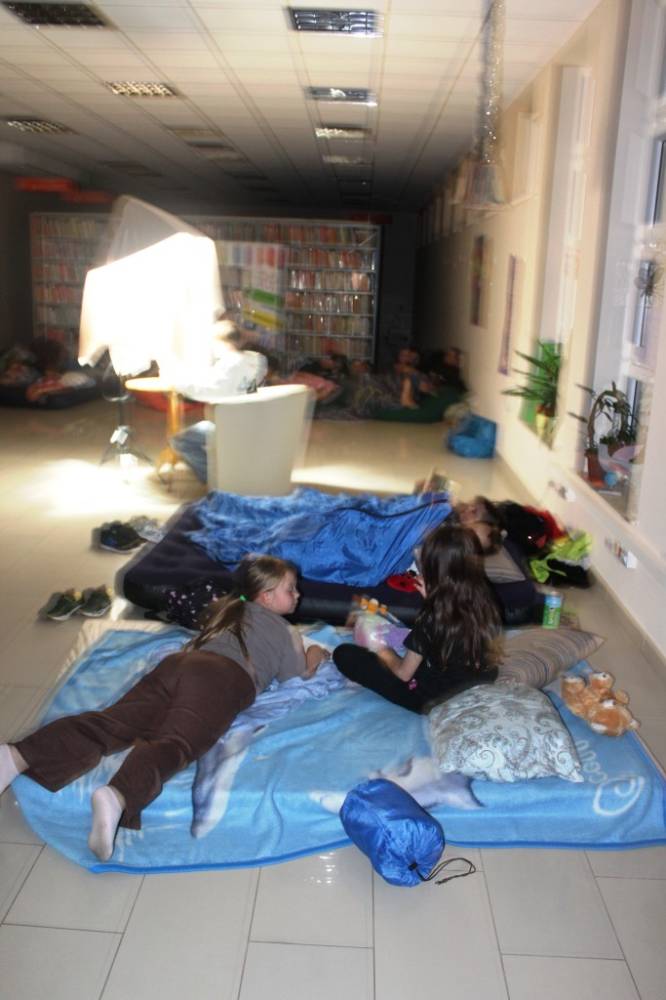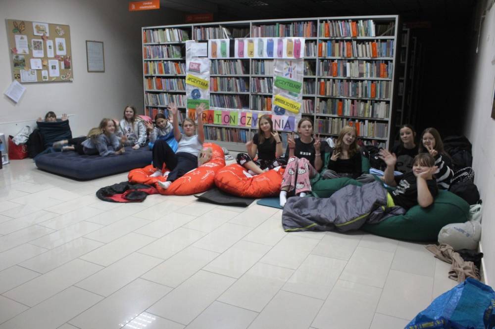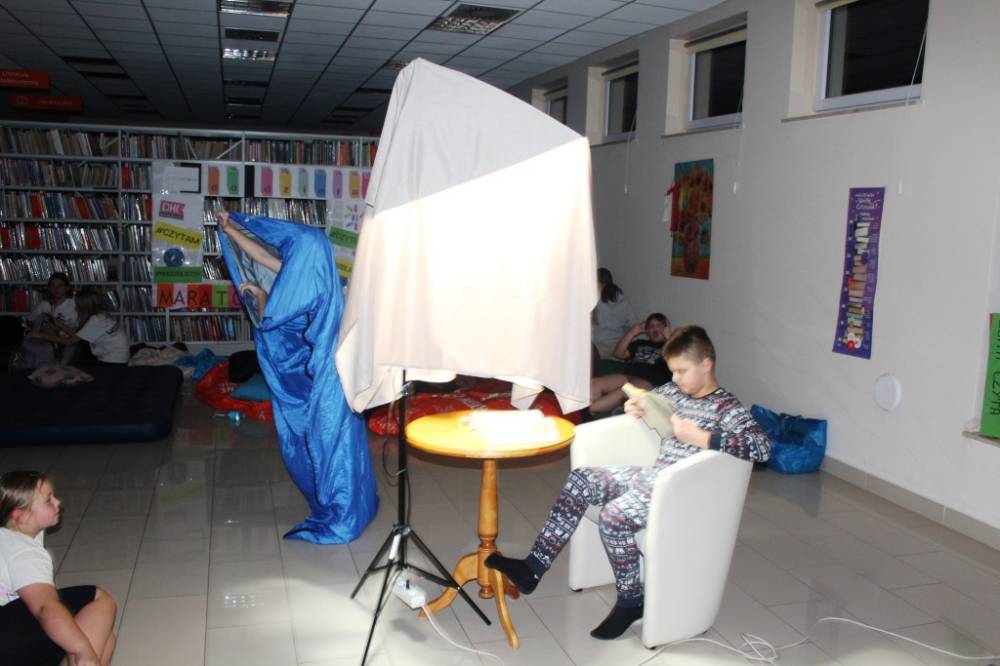 Na zakończenie nocy uczestnicy wspólnie obejrzeli film dla młodzieży, który idealnie wpisał się w atmosferę całego wydarzenia. Dopiero po seansie przyszedł czas na odpoczynek i sen wśród książek.