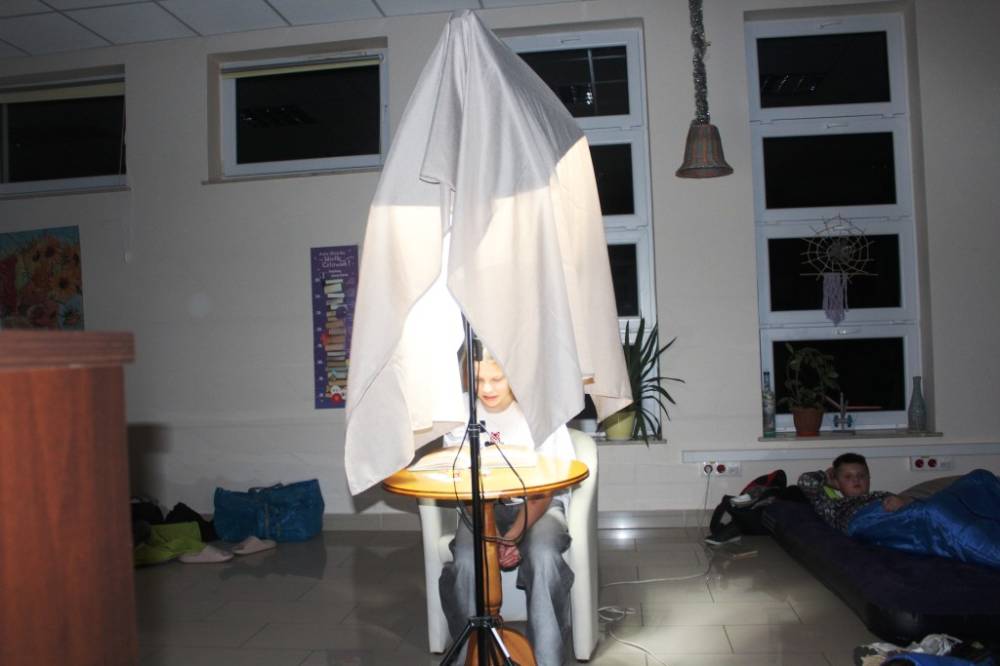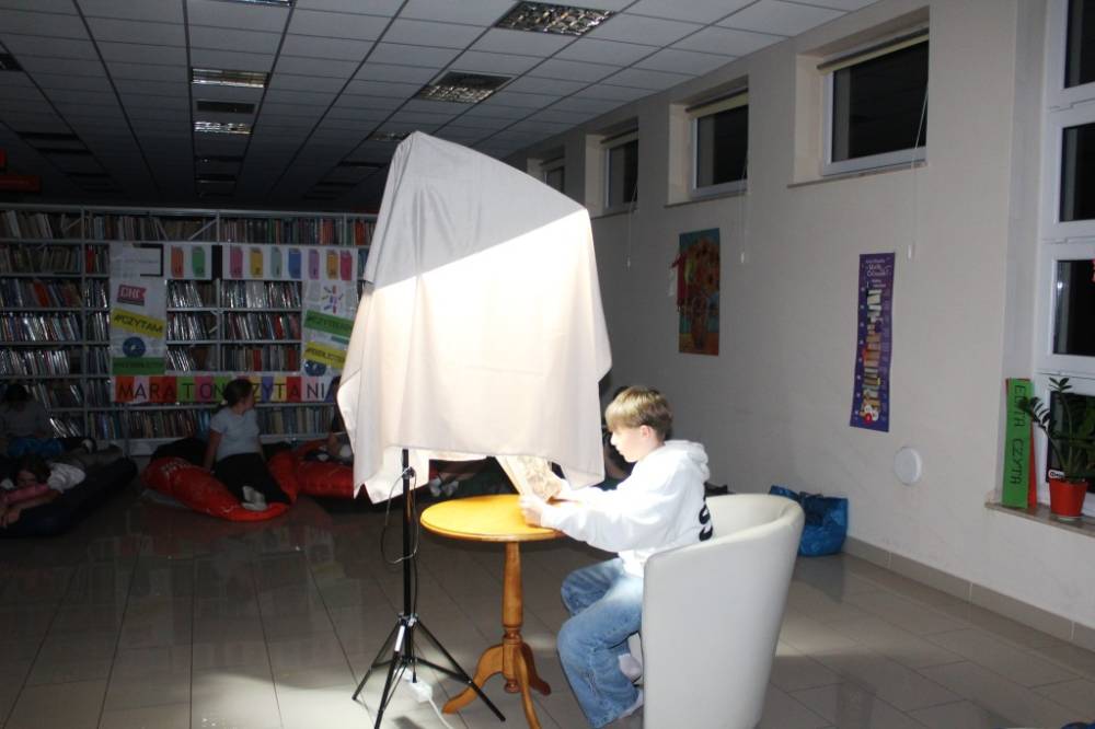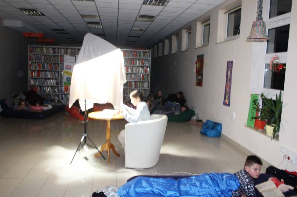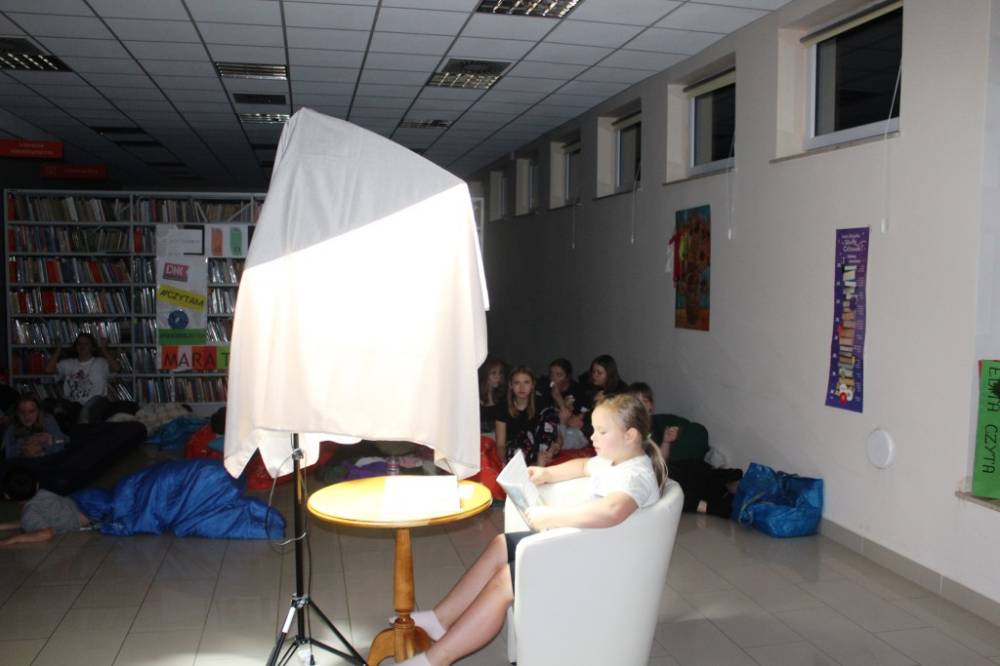 Na nocne spotkanie zgłosiło się 15 uczestników, którzy z entuzjazmem wzięli udział w przygotowanych atrakcjach. Wieczór rozpoczął się od Maratonu czytania, w czasie którego młodzież prezentowała wybrane fragmenty swoich ulubionych książek. Następnie uczestnicy spróbowali swoich sił w grze Kropki oraz emocjonującej rozgrywce Mafii, która dostarczyła wielu śmiechu i emocji.