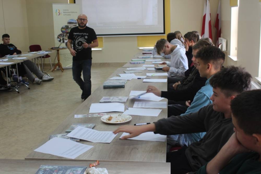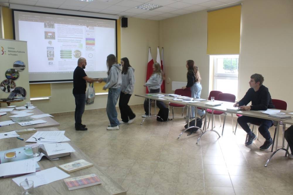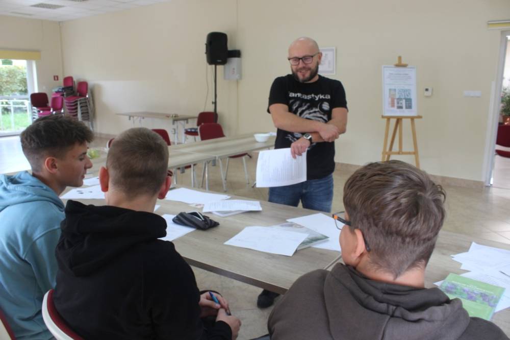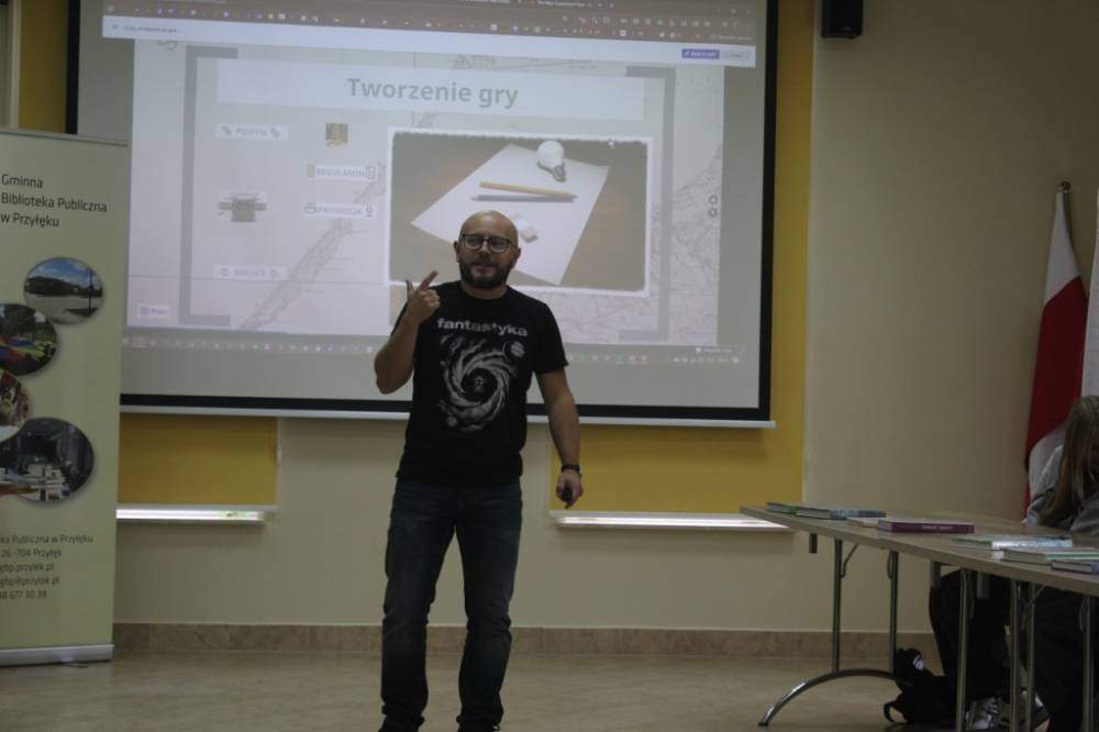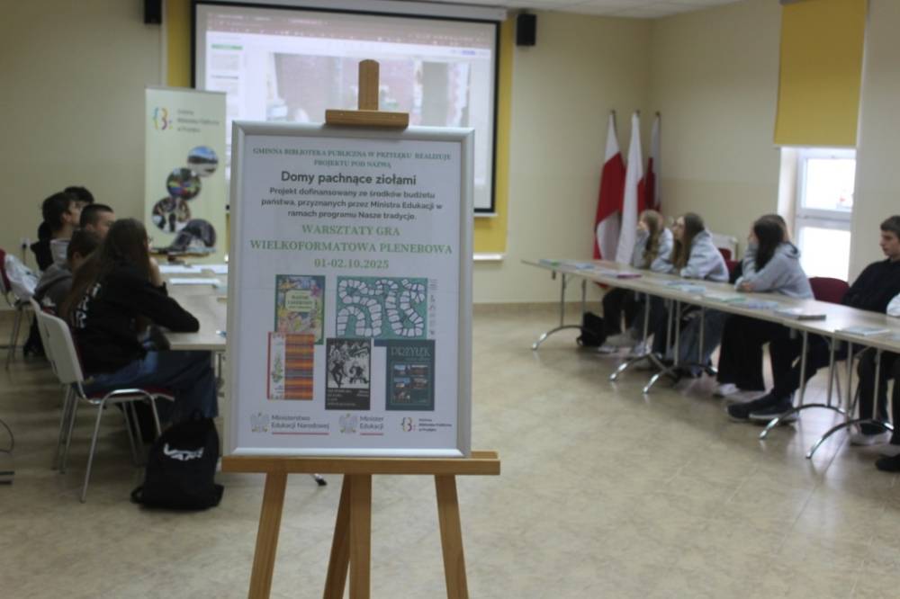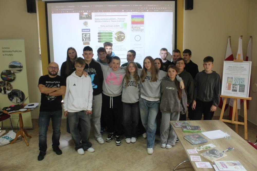 W ramach przedsięwzięcia „Domy pachnące ziołami” uczniowie klasy ósmej z Publicznej Szkoły Podstawowej w Przyłęku wzięli udział w warsztatach z tworzenia gier plenerowych, które poprowadził Karol Baranowski – pracownik Pedagogicznej Biblioteki Wojewódzkiej im. Hugona Kołłątaja w Krakowie oraz laureat tytułu Ogólnopolskiego Bibliotekarza Roku 2019.