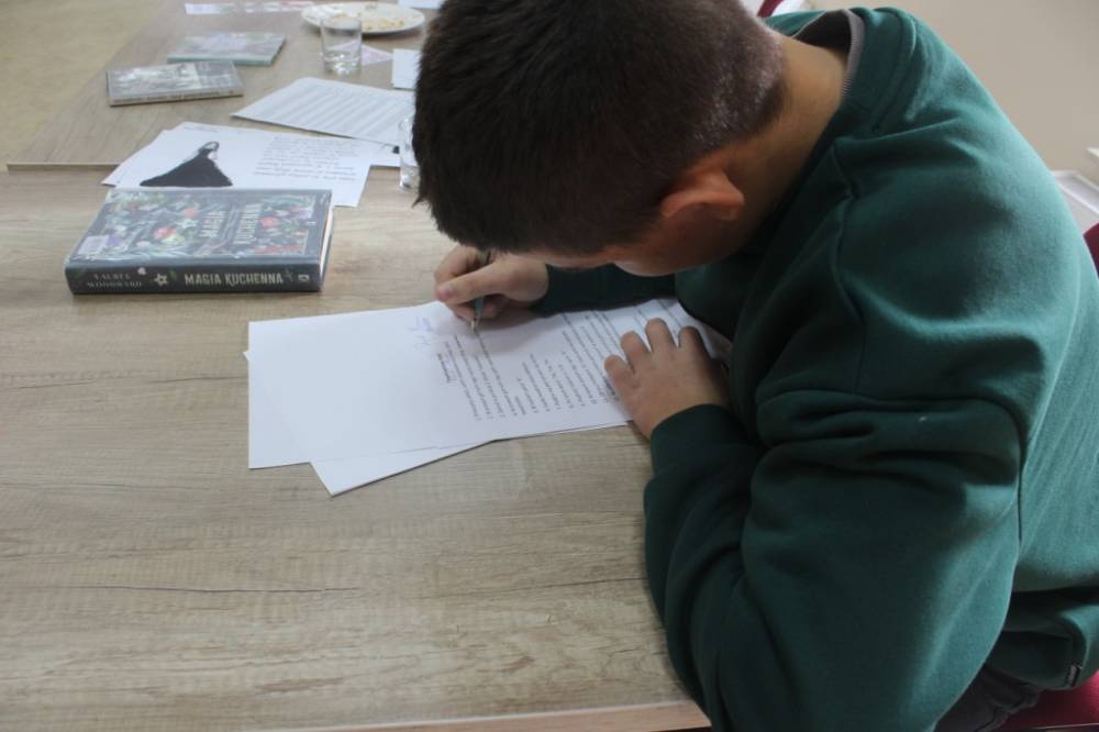 Korzystając z materiałów związanych z tradycjami, legenadami, zwyczajamii ziołami powstałych wcześniej na warsztatach literackich oraz z publikacji dostępnych w bibliotece, uczestnicy szukali inspiracji do stworzenia własnych projektów gier. Każdy z uczniów miał szansę zaprezentować swój pomysł, po czym wspólnie przystąpiono do nakreślenia wstępnej wersji gry plenerowej, która może w przyszłości posłużyć jako narzędzie edukacyjne i integracyjne w środowisku lokalnym.