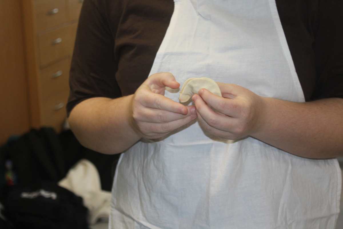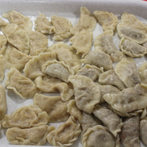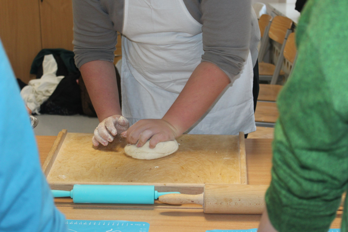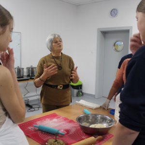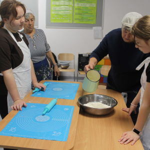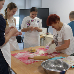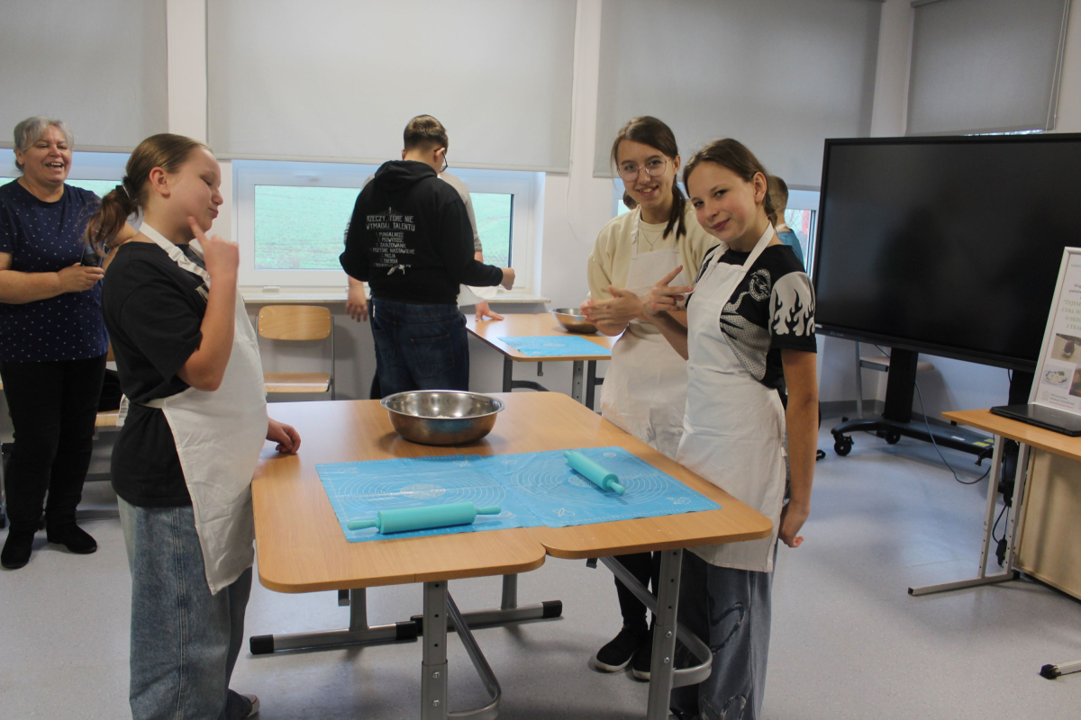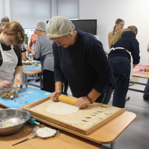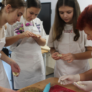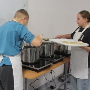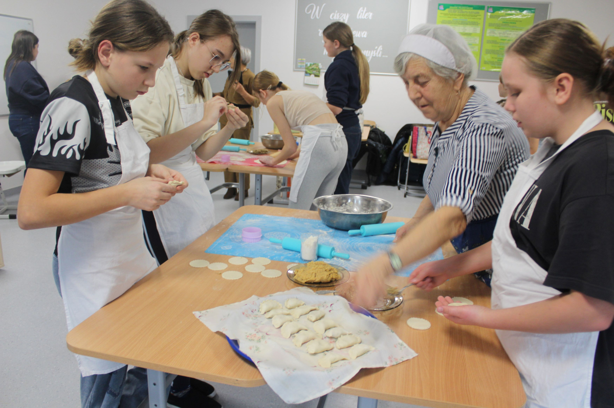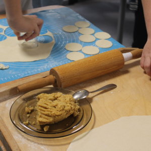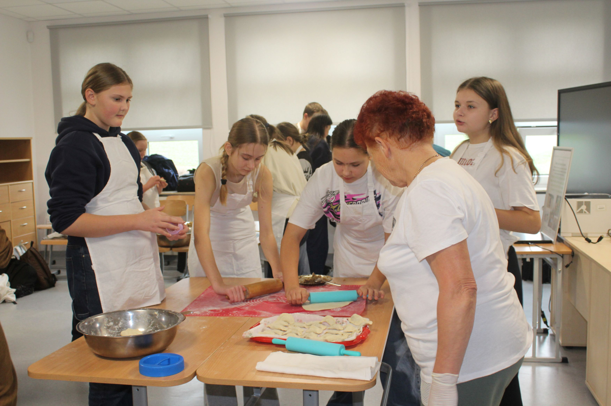 W drugiej części warsztatów odbyły się zajęcia praktyczne poprowadzone przez członkinie Koła Gospodyń Wiejskich w Rudkach. Panie podzieliły się swoją wiedzą kulinarną i wieloletnim doświadczeniem, wprowadzając młodzież w świąteczny klimat poprzez wspólne lepienie pierogów – jednego z najważniejszych dań wigilijnych.