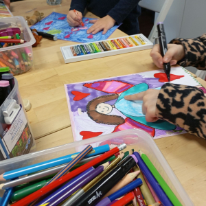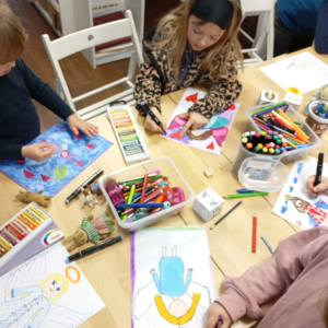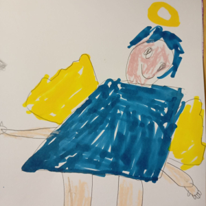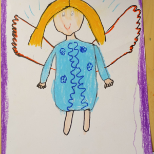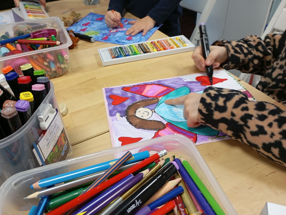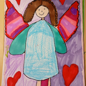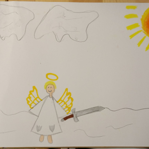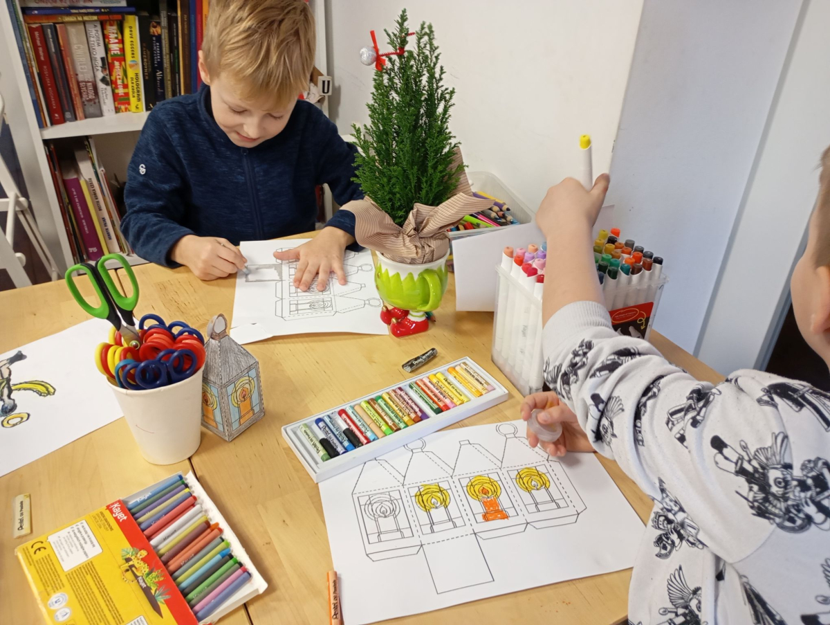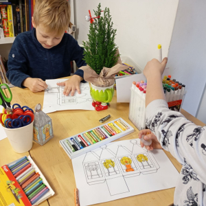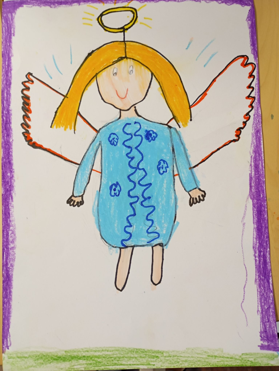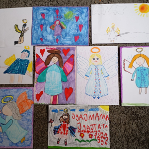 Następnie rozpoczął się warsztat rysowania aniołów, który okazał się prawdziwą artystyczną przygodą. Każde z dzieci mogło stworzyć swoją własną, niepowtarzalną wizję anioła. W ruch poszły kredki, flamastry i kartki – młodzi twórcy z ogromną pomysłowością przenosili swoje idee na papier. Jedne anioły były klasyczne – w jasnych szatach i z delikatnymi skrzydłami, inne bardziej fantazyjne – pełne kolorów, ozdób i wesołych szczegółów. Każdy rysunek miał swój charakter i historię.