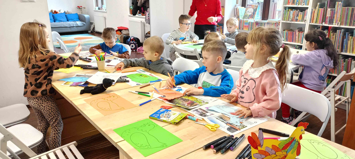 W dniu dzisiejszym odbyły się warsztaty wielkanocne dla grupy przedszkolnej z Grabowa nad Wisłą. Spotkanie miało na celu przybliżenie dzieciom tradycji związanych ze Świętami Wielkanocnymi. Podczas zajęć rozmawialiśmy o zwyczajach, symbolach oraz znaczeniu tych wyjątkowych dni. Dzieci z dużym zainteresowaniem wysłuchały książeczki „Przygody Fenka – Wielkanoc”, która w przystępny sposób wprowadziła je w tematykę świąteczną. Był to moment pełen skupienia, ale też ciekawych pytań i spontanicznych wypowiedzi najmłodszych.