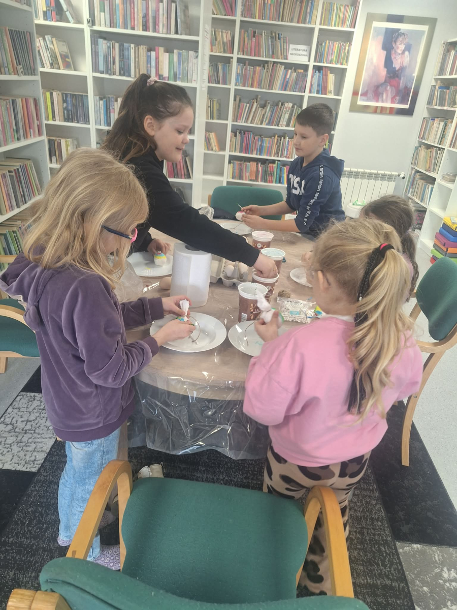 W bibliotece w Łagowie odbyło się wyjątkowe, przedświąteczne spotkanie dla najmłodszych, podczas którego dzieci miały okazję wziąć udział we wspólnym malowaniu pisanek. Uczestnicy z radością i zaangażowaniem tworzyli własne, niepowtarzalne ozdoby wielkanocne.