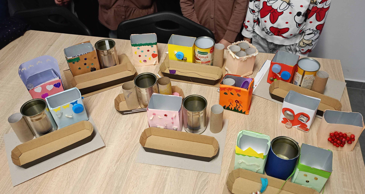 Drugie spotkanie miało charakter ekologiczno-praktyczny. Dzieci wykonały organizery na biurko z niepotrzebnych opakowań, takich jak pudełka, rolki po papierze czy plastikowe pojemniki. Dzięki temu uczestnicy mogli przekonać się, że przedmioty uznawane za odpady mogą zyskać „drugie życie”. Warsztaty były doskonałą lekcją recyklingu i upcyklingu, ucząc dzieci troski o środowisko oraz kreatywnego podejścia do codziennych problemów.