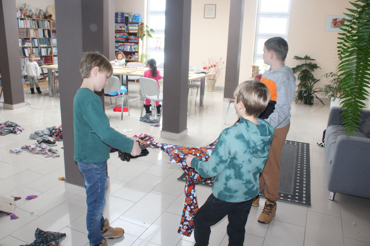 Tego dnia dzieci uczestniczyły także w zajęciach plastycznych. Po wcześniejszej nauce rysowania samodzielnie wycinały, dobierały materiały i tworzyły własne, niepowtarzalne owieczki. Zajęcia rozwijały kreatywność, zdolności manualne oraz sprawiły uczestnikom wiele radości.