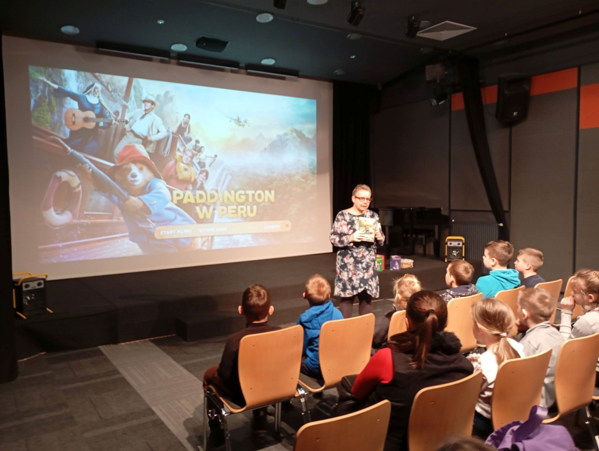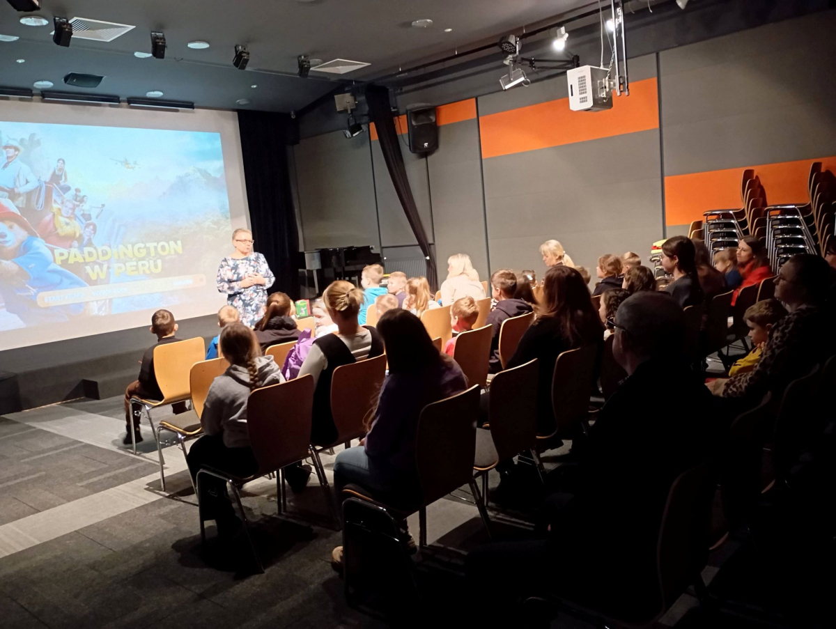 Pierwszym przystankiem była Multimedialna Bibliotka dla Dzieci i Młodzieży nr XXXI – nowoczesna, kolorowa przestrzeń, w której książki spotykają się z technologią, a czytanie z zabawą. To właśnie tam rozpoczęliśmy naszą przygodę od wspólnego seansu animacji „Miś Paddington w Peru”. Śmiech dzieci mieszał się z uśmiechami rodziców – bo dobre historie łączą pokolenia. I dokładnie tak było tym razem.