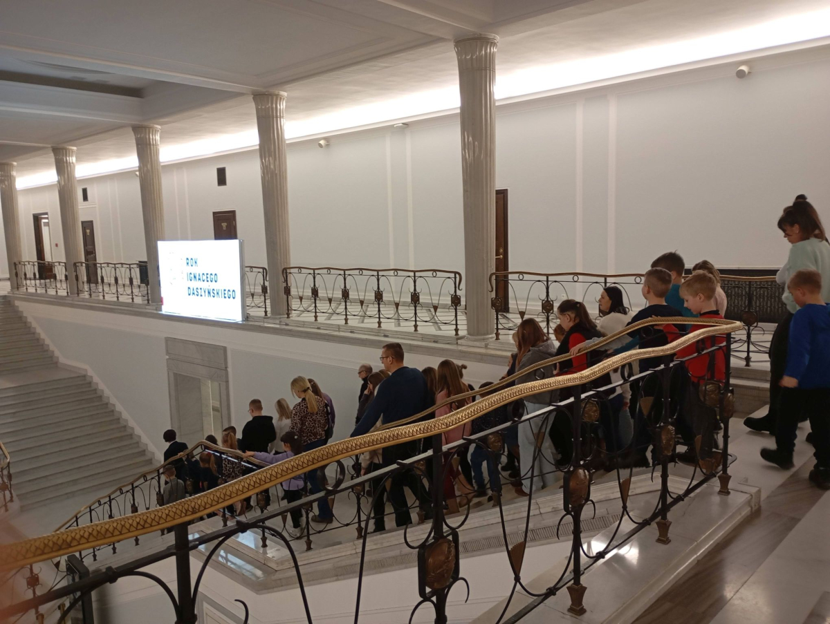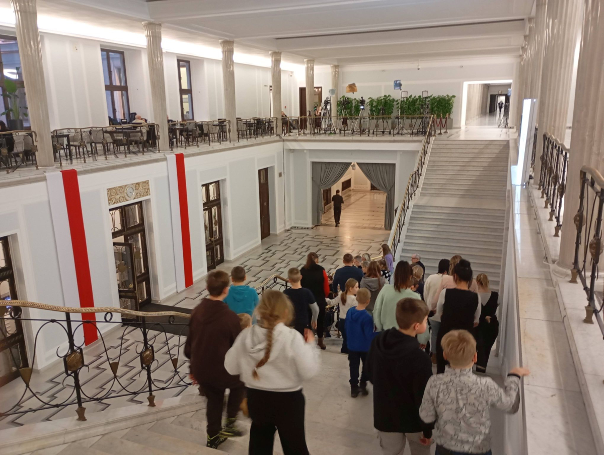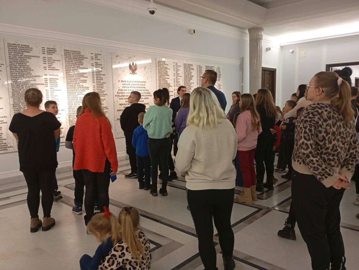 Kolejnym punktem programu była wizyta w Sejmie Rzeczypospolitej Polskiej. To spotkanie z historią i współczesnością w jednym – miejsce, gdzie na co dzień zapadają ważne decyzje dla całego kraju. Dzieci słuchały z ciekawością, rodzice zadawali pytania, a wszyscy razem mogli na chwilę zajrzeć za kulisy funkcjonowania państwa. Nauka przez doświadczenie – w najlepszym wydaniu.