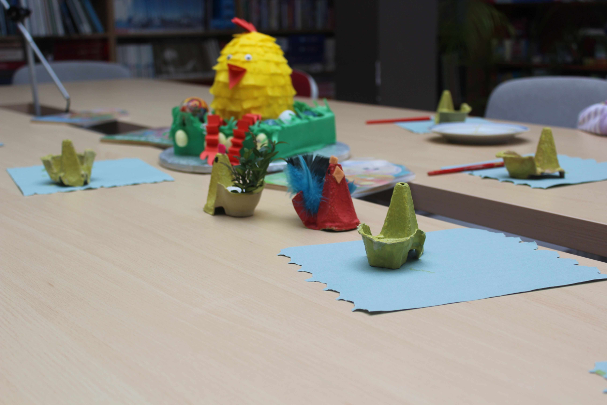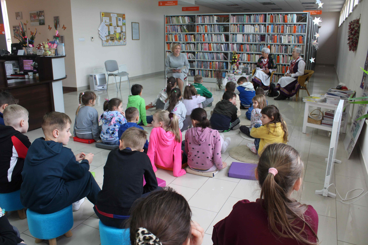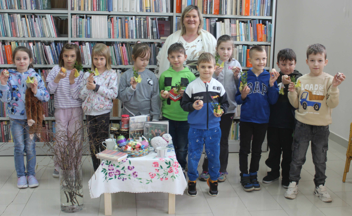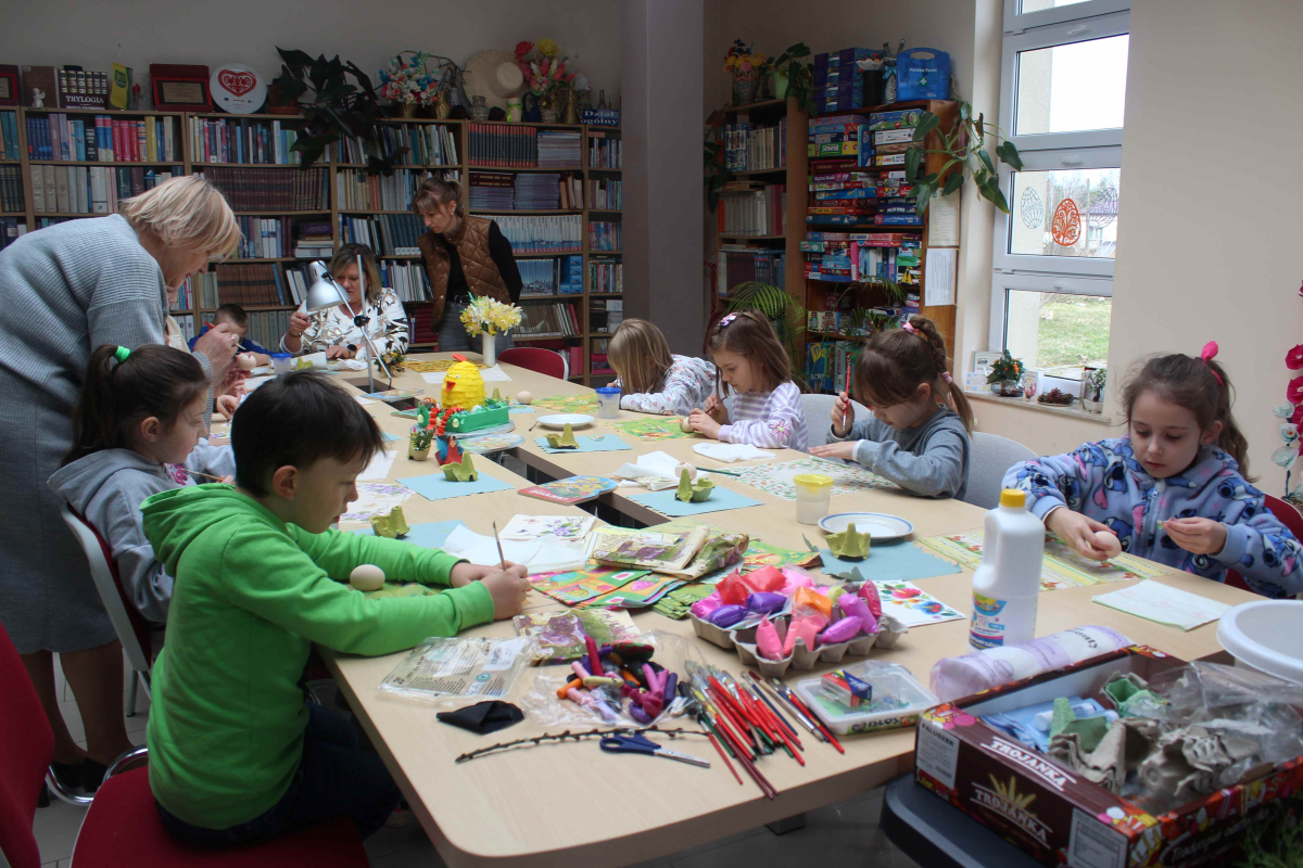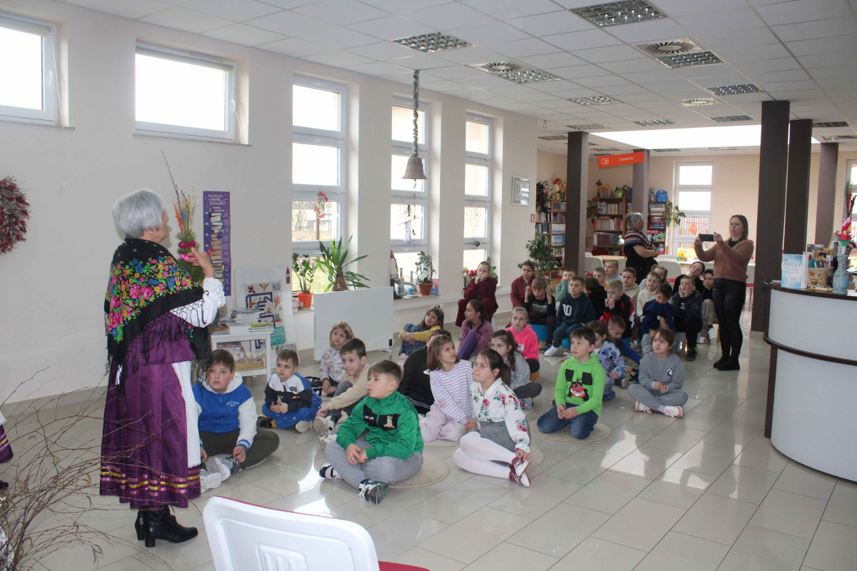 W bibliotece zrobiło się naprawdę wiosennie – a wszystko za sprawą wyjątkowych, wielkanocnych zajęć przygotowanych dla uczniów klas 1–3 szkoły podstawowej. Już od progu dało się poczuć atmosferę nadchodzących świąt: było kolorowo, radośnie i bardzo twórczo.