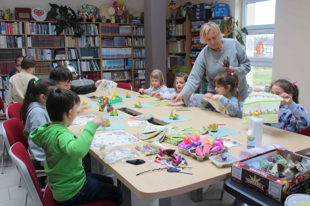 Zajęcia zakończyły się wspólną prezentacją wszystkich dzieł. Dumne uśmiechy dzieci były najlepszym dowodem na to, jak wiele radości przyniosło to spotkanie. Był to czas nie tylko twórczej zabawy, ale również poznawania tradycji i budowania więzi międzypokoleniowych.